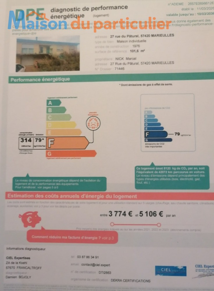 DPE Réalisé le 11 mars 2026 par Ciel Expertises - 57670 FRANCALTROFF (N°DTI2863)