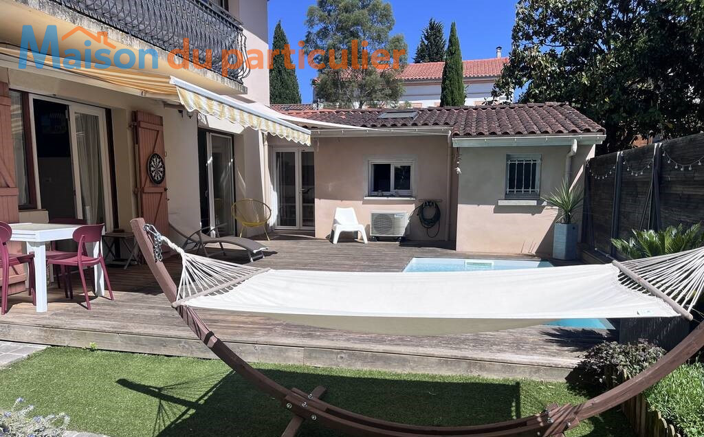 Maison 4 pièces 3 chambres 108 m² Terrain 150 m² .Très agréable maison/appartement de plain-pied avec piscine composée de 3 chambres dont une suite parentale avec salle d'eau et espace dressing, à l'écart des deux autres chambres qui ont également leur propre salle de bain (avec baignoire).