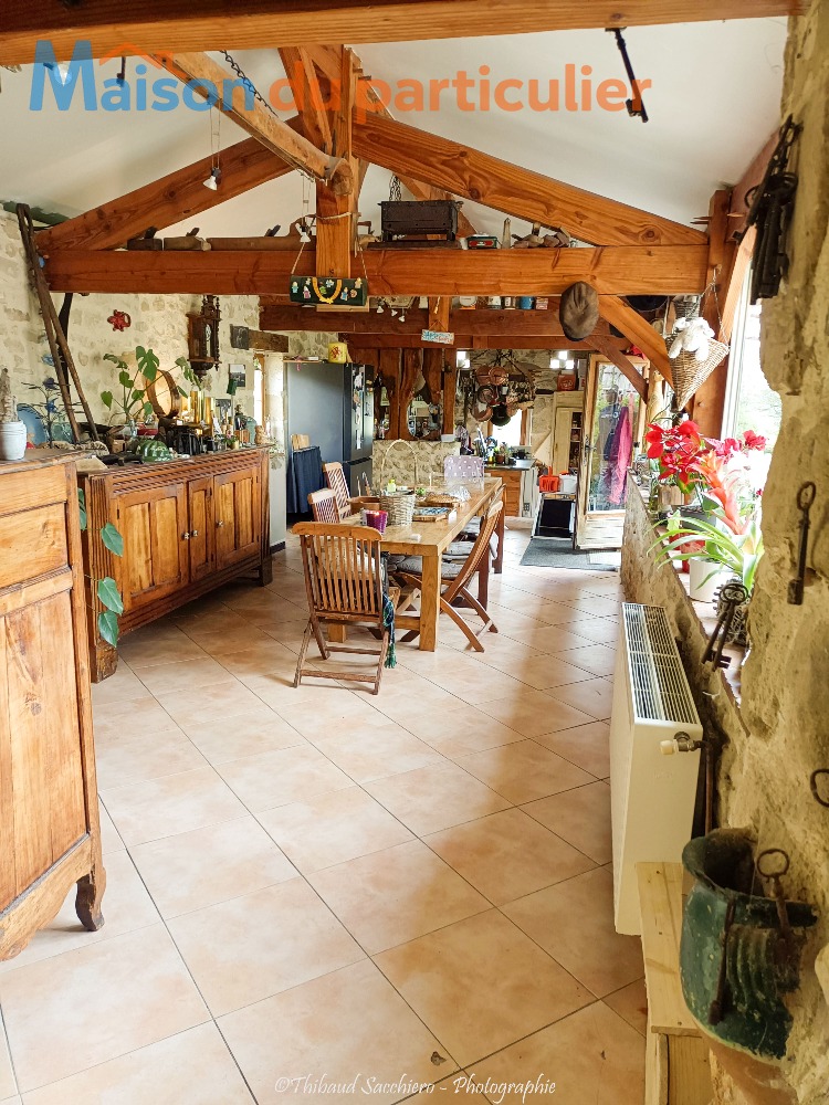 Ancienne grange rénovée avec goût en 2006, cette propriété allie le charme de l’ancien et le confort d’une maison familiale lumineuse.