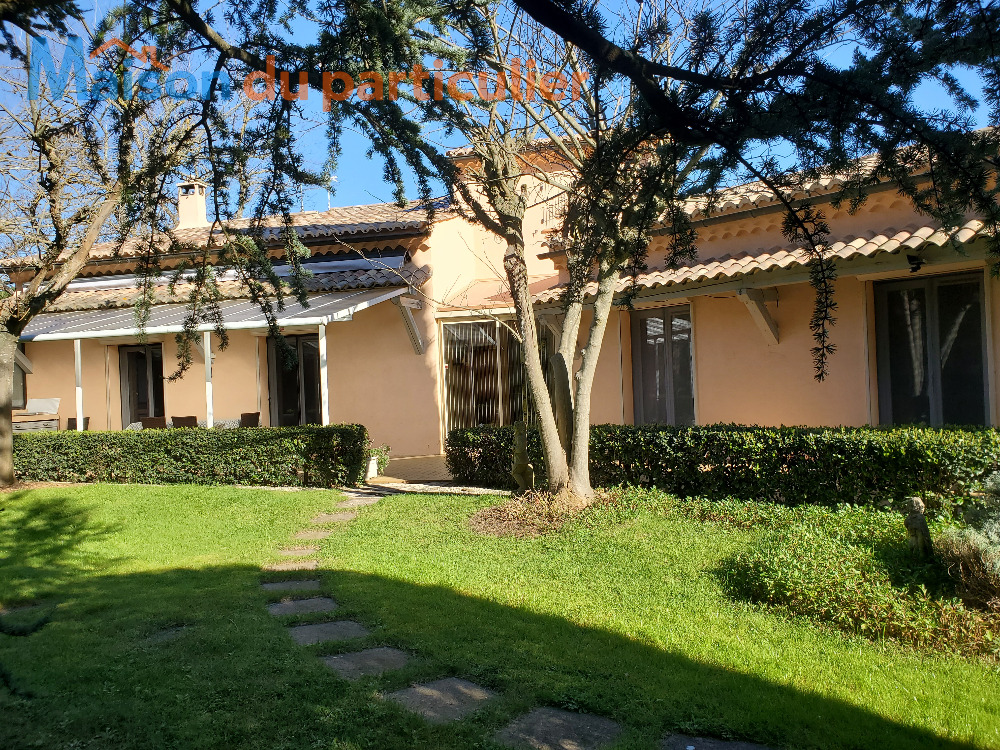 Maison sur vide sanitaire d’une surface habitable de 140 m2 environ sur terrain de 2800 m2 dont 1500 m² de jardin arboré, avec une piscine couverte d
